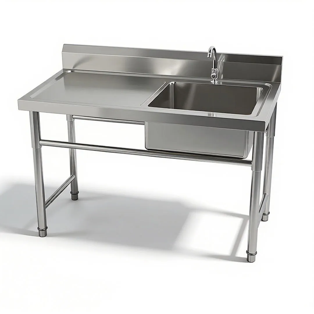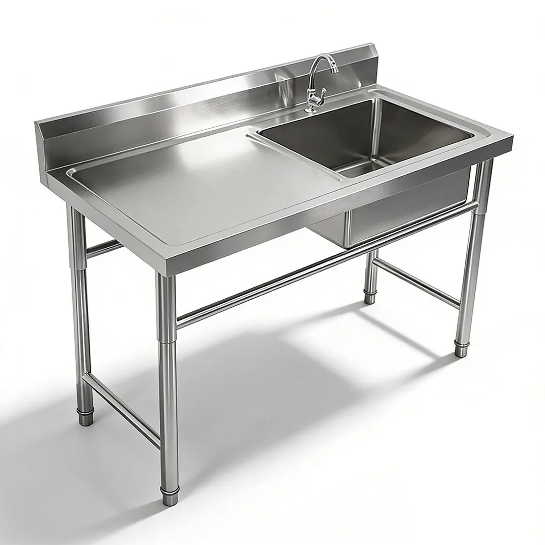 The Wastafel Tunggal Tugas Berat dengan Drainboard untuk Restoran is a robust, professional-grade cleaning solution specifically engineered to meet the high-volume, rigorous demands of restaurant kitchens. Designed with a single, deep, heavy-duty compartment paired with an integrated drainboard, this sink combines powerful cleaning capability with convenient drying functionality, making it an essential tool for busy restaurant operations. The spacious single compartment accommodates large cookware, serving trays, and bulk tableware, while the attached drainboard provides a dedicated space for air-drying cleaned items—eliminating the need for separate drying racks and optimizing workflow efficiency. Crafted from premium, thick-gauge stainless steel, it boasts exceptional durability, corrosion resistance, and impact strength, capable of withstanding frequent use, heavy loads, harsh cleaning chemicals, and high temperatures. This sink serves as a reliable workhorse in restaurant kitchens, ensuring thorough cleaning, compliance with food safety standards, and long-lasting performance, while its space-saving design maximizes countertop utility for seamless daily operations.