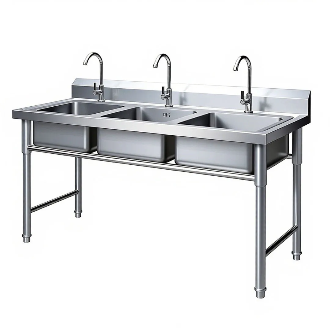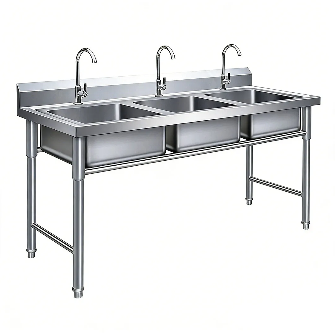 Wastafel Tiga Kompartemen Profesional adalah solusi pembersihan kelas komersial yang dirancang khusus untuk memenuhi persyaratan kebersihan, efisiensi, dan kepatuhan yang ketat di dapur komersial yang sibuk. Didesain dengan tiga kompartemen terpisah dan khusus, wastafel ini penting untuk mematuhi protokol keamanan pangan komersial—biasanya digunakan untuk proses pembersihan tiga langkah: mencuci, membilas, dan mensanitasi. Dibuat dari bahan premium dan kuat, produk ini tahan terhadap kerasnya lingkungan layanan makanan bervolume tinggi, termasuk penggunaan yang sering, bahan kimia pembersih yang keras, peralatan masak yang berat, dan suhu tinggi. Wastafel ini berfungsi sebagai landasan pengoperasian dapur komersial, memastikan piring, peralatan masak, dan perkakas dibersihkan secara menyeluruh, disanitasi, dan aman untuk digunakan kembali, sekaligus mengoptimalkan efisiensi alur kerja. Desainnya yang cermat memaksimalkan pemanfaatan ruang, menyederhanakan proses pembersihan, dan memastikan kepatuhan terhadap standar kesehatan dan keselamatan, menjadikannya alat yang sangat diperlukan untuk restoran, hotel, kantin, dan fasilitas layanan makanan lainnya.